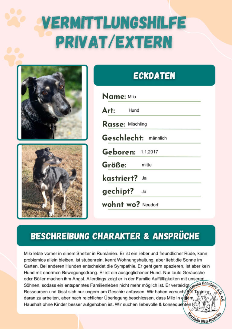 Milo Beitrags-Autor:S. Mueller Beitrag veröffentlicht:30. September 2025 Beitrags-Kategorie:Hunde Beitrags-Kommentare:0 Kommentare Bei Interesse melden Sie sich gerne bei uns im Tierheim oder unter folgender Emailadresse: melanie-matzek@t-online.de Das könnte dir auch gefallen Ben 20. Mai 2025 Talos 11. Juni 2025