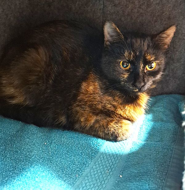 Venus ist noch ängstlich, aber lieb. Sie kommt aus einer Haltung von mehr als 20 Katzen, die nicht kastriert waren.